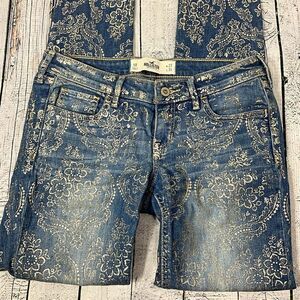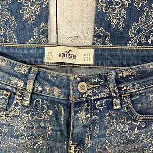 Women’s Hollister Silver Foil Damask Print jeans. EUC Size 27/5R