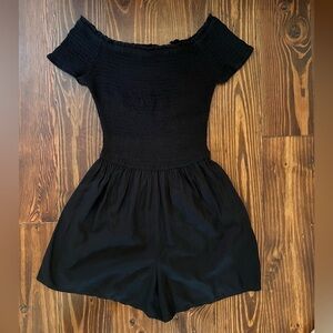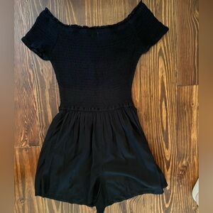 Darling HOLLISTER smocked black romper! Can be worn off shoulder or on! EUC, no flaws to note.