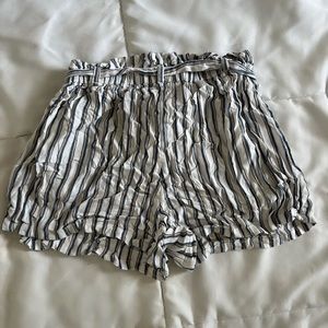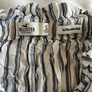 Hollister ultra high rise white shorts with blue stripes and tie around the waist super comfy! Fits size small
