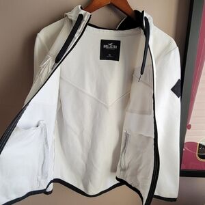 HOLLISTER UNISEX HOODIE SIZE XS BLACK/WHITE FULL ZIP POCKETS LOGO