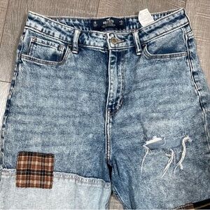 HOLLISTER Ultra High Rise Mom Jeans Size 28 Patchwork Blue Jeans