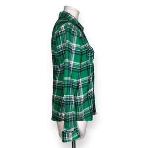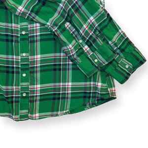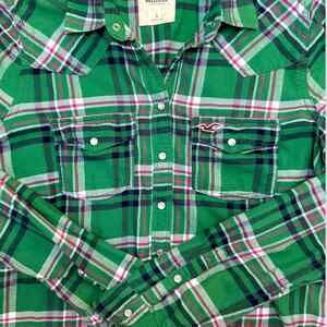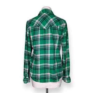 HOLLISTER Western Style Button Up Shirt Pearl Snap Flannel Green Pink Large