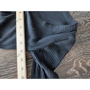 HOLLISTER Woman's XS Black Long Sleeve Ribbed Scoop V neck Button Up Tie Top 176