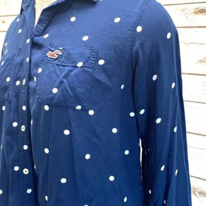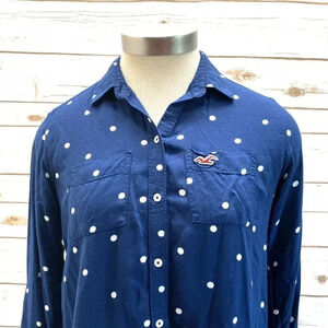 HOLLISTER Women Long Sleeve Collared Button Down Polka Dots Shirt