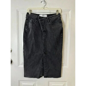 HOLLISTER Womens Black Dark Wash Crossover Skirt Front Slit Size 27 Casual Boho