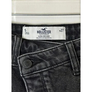 HOLLISTER Womens Black Dark Wash Crossover Skirt Front Slit Size 27 y2k 90' Boho