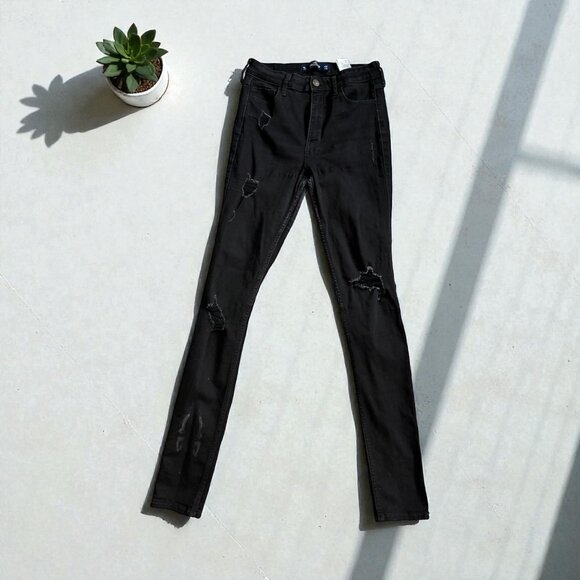 Elevate your style with Hollister's distressed skinny jeans. These black jeans offer a chic, edgy look and are perfect for any casual occasion. Crafted for comfort and durability, they're designed to fit seamlessly into your wardrobe.