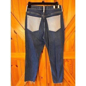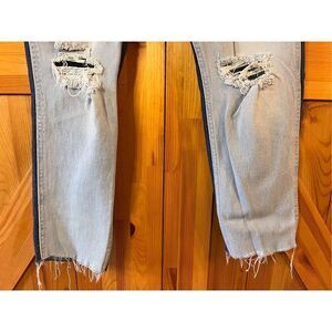 HOLLISTER Womens Jeans Size 7R 28x27 ITwo Tone ULTRA HIGH RISE MOM JEANS Denim stretch distressed raw hem has a mark see pictures measurements 28” waist 25.5” inseam 12” rise (3411)