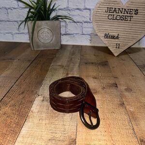 HOLLISTER - Women's Belt - BROWN Leather - LEATHER STRIPS DESIGN - Size M