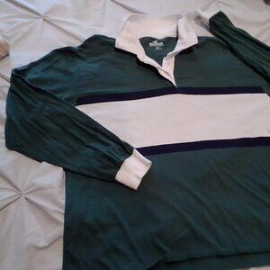 HOLLISTER long sleeved polo SIZE Medium, forest green, navy and white stripe.