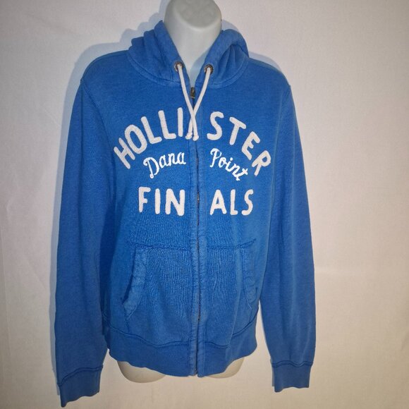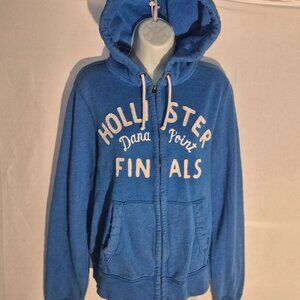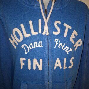 HOLLISTER of California hooded sweatshirt, zippered front, blue & white. MED.