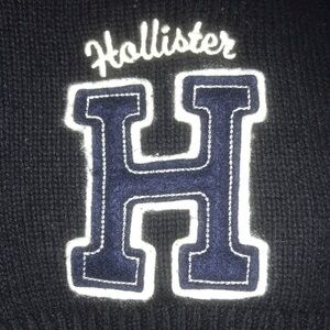 HOLLISTER varsity style button up cardigan navy and white H patch detail size S