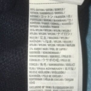 v-neck cardigan navy and white, H patch and stripes on one sleeve, super soft.
