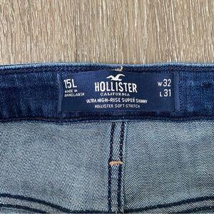 HOLLISTER women’s high rise skinny jeans size 15L 32x31 dark wash distressed