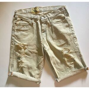 EXCELLENT USED CONDITION MENS SIZE 28 x 11” Distressed DIY Short cut off to 11” — CUFF CAN BE PULLED DOWN