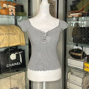 HOLLISTER | Ribbed Cap Sleeve Striped Shirt in Black and White.