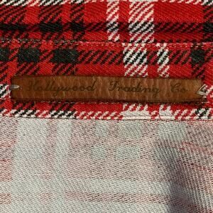 HOLLYWOOD TRADING CO L Red Black White Plaid Distressed Cotton Long Sleeve Shirt