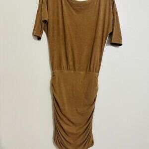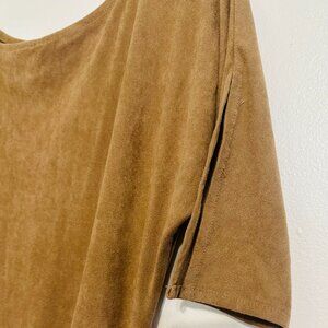 FAUX SUEDE TAN DRESSE HALF SLEEVE STRETCH SIZE (16 )SCOOP NECK