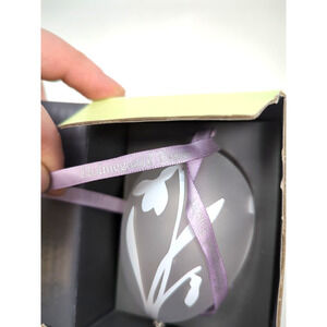 This exquisite glass egg ornament from Holmegaard is a vintage masterpiece. Crafted in Denmark by Dorthe and Peter Svarrer, it features a stunning white blown glass finish with intricate painted details. The egg is perfect for any Easter egg collection and is sure to add a touch of elegance to any room. The piece is handmade and showcases the finest quality of art glassware. It is an original vintage item from 2007 and has not been modified. The ornament is suitable for decorative purposes only and is not intended to be a food item. Add this beautiful piece to your collection and enjoy the timeless beauty of Holmegaard.