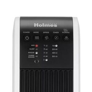 Holmes 40" SmartConnect Wi-Fi Digital Tower Fan is the smartest way to cool down your living space. With smart Wi-Fi technology, you can remotely schedule cooling throughout the day, set the auto shut-off timer and create schedules. Use with Amazon Alexa or Google Assistant for voice-enabled controls. This slim, compact tower fan is ideal for larger living areas where floor space is limited; bedrooms, kitchens, living rooms and home offices, and has an integrated carrying handle to easily move from one room to the next. Rest easy with the soothing sleep mode option and up to 8-hour auto-shut off timer to conveniently turn off these
