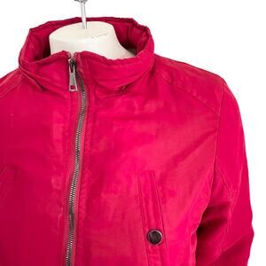 HOLSTARK Faux Fur Lined Quilted Parka in Red Full zip Snap pockets SZ M