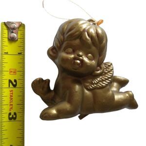 HOLT HOWARD Cherub Ornament Gold Angel Wings HH Hong Kong MCM Plastic Vtg Retro.