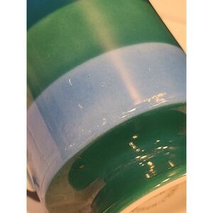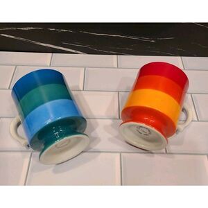 Vintage HOLT-HOWARD 1966 Striped Set of (2) Porcelain Mugs with Handles Footed | Made in Japan | Blue & Green Striped | Orange & Red Striped | 4" H x 3" W | Excellent USED Vintage Condition | *Flaw, there's light signs of previous use and some paint scratched off on the blue Striped mug | Please refer to the photos for the condition | Weight before packaging 1 lb.
