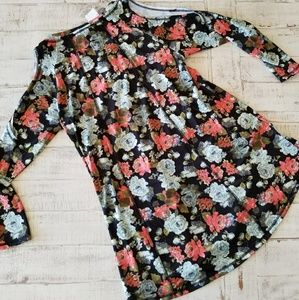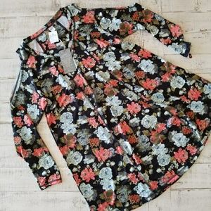 NWT Adorable floral cold shoulder dress. This dress is so soft with the spandex and polyester fabric, super in style with the cold shoulder and round hem, and of course the floral print!