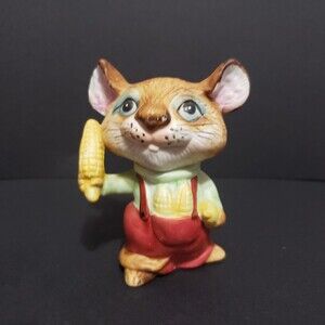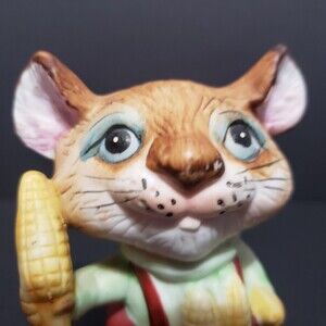 HOMCO FIGURINES Harvest Country Mouse ~ Overalls ~ Corn ( 4" 3" ).