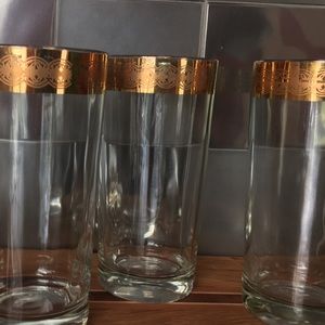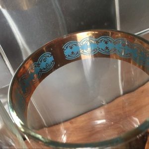 HOME▪️4 GLASSES . DRINKING GLASSES TRIMMED WITH GOLD AND TURQUOISE DETAIL. Great used for a hot day on the porch with some lemonade 🍋 listed under Anthropologie for exposure.