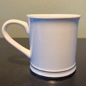 The Mr. ceramic mug features a whimsical graphic of an old-fashioned, thick, black mustache with stylized black font that reads, The Mr. Sport a stylish and comfortable handle. Sits on a pedestal base circled by parallel black border stripes. Microwave and dishwasher safe. Measures 3.75” tall with a 3.25” diameter; 5” across including handle. Holds 12 fluid oz. From Home Essentials.