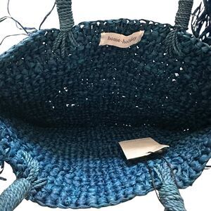 HOME HOLIDAY Straw Handle Tote Bag Blue NWT