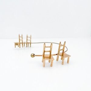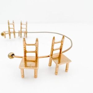 HOME by Areeayl A Seat - Choker. Features four brass chairs seated around the circumference of your neck. Adjustable. Limited Quantity and made to order. Each item is handmade and no two are exactly alike. This piece is not from the Macy's INC collection. Preowned. Worn a handful of times. Shows light signs of use and wear. Choker band shows some warping from being worn and adjusted for fit. No missing or broken parts.