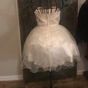 champagne dress with an accessorized top can be worn as a homecoming dress, once a size 3/4 altered to a size 2, worn once