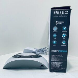 Homedics Sleep Solutions SoundSpa portable compact travel sound machine in box with adaptor. Very slightly used - works great.
