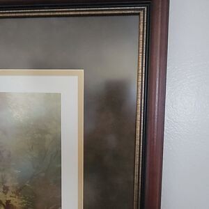 Framed measures 39x39l0, print measures 18x27. Excellent condition, wooden frame with gold accents, mossy green border. print number 1418/5850.
