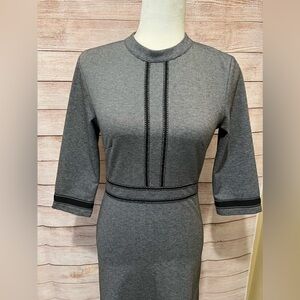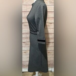 HOMEYEE Crew Neck 3/4 Sleeve gray with Black Stitching Aline Dress size 4. 17" Pit to pit and 40" Long. Smoke free home.