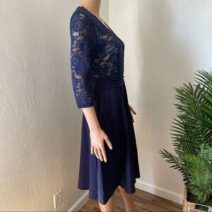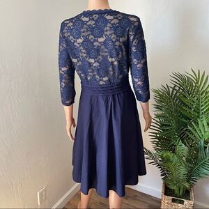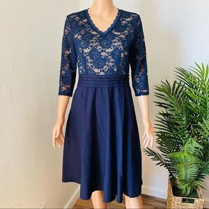 HOMEYEE Navy Lace V-Neck Dress Size 8