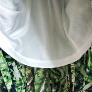 Gorgeous green, black and white leaf print sheer skirt over a white stretch short under skirt.