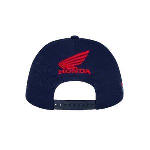 Honda HRC Baseball Cap. Cap with blue bae and red details, 3 red lines and front Honda logo. 100% cotton