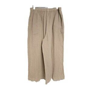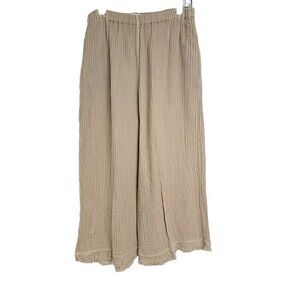 HONEST COTTON The Frayed Crop Palazzo Pants Beige Cotton Wide Leg Women’s L/XL