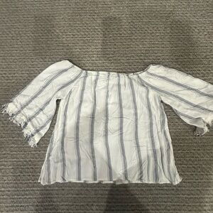 HONEY BELLE white/blue striped off the shoulder top, size S!