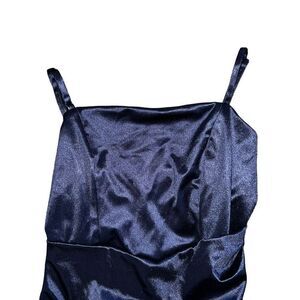 HONEY & ROSIE Square Neck Faux Wrap Satin Blue Dress Size Large