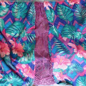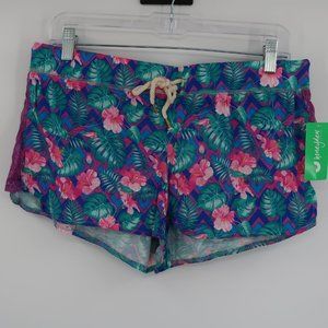 Brand new with tags HONEYDEW Drawstring Lace Trim Lounge Shorts Size X-Large. Tropical floral pattern with purple lace detail on sides.