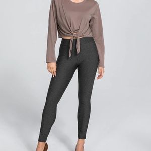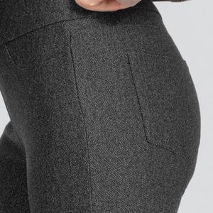 Interior shaping panels sculpt your tummy, hips, and booty. Tweed ponte fabric smooths and conceals.