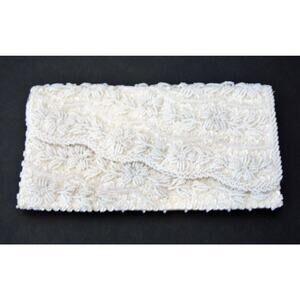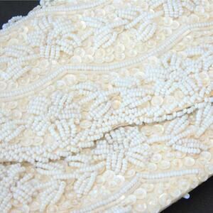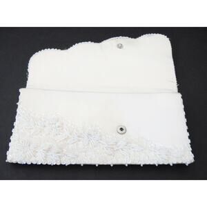 HONG KONG Beaded EVENING BAG CLUTCH Purses White Cream Sequin Floral Microbeads
