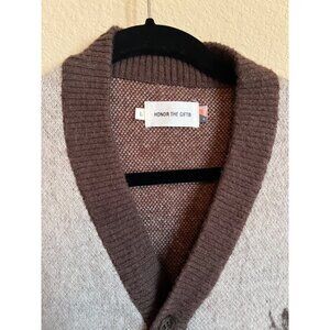 HONOR THE GIFT Mens Crest Emblem Knit Cardigan Sweater Brown Tan Size L