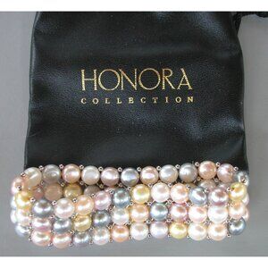 This elegant Honora Collection bracelet features a stunning array of cultured pearls in soft pastel hues, accentuated by shimmering silver beads. Its stretch design ensures a comfortable fit, making it suitable for a variety of wrist sizes. A sophisticated addition to any jewelry collection, this piece offers timeless style. size 7