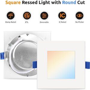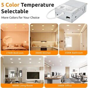 * 💡【5CCT Selectable】Canless led square recessed light of 2700K/3000K/3500K/4000K/5000K in one fixture meets your different needs in hallway, living room, kitchen and bedroom etc. Just flip a switch on the side of the box to get the color you want.