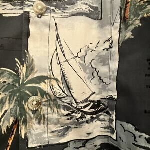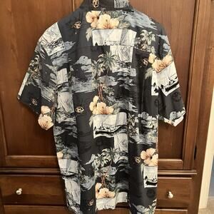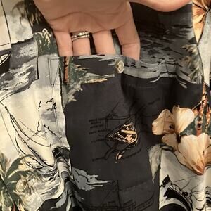HOOK & TACKLE Men’s Hawaiian Shirt Fish Fishing Sailboats Hibiscus Size 2XL Big